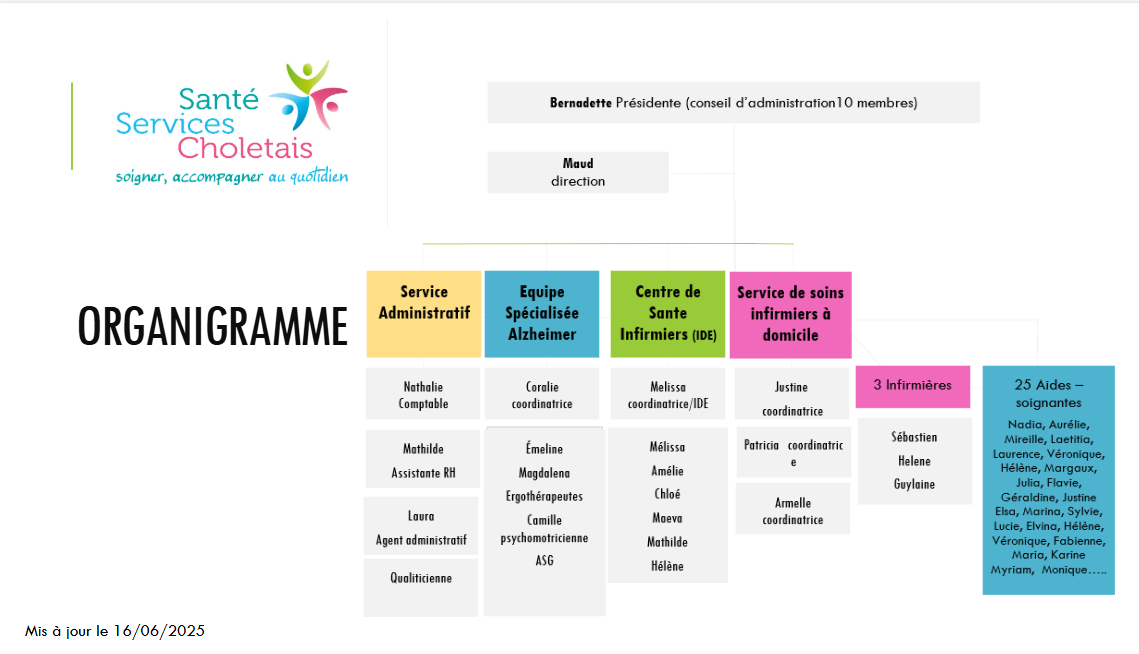 Santé Services Choletais est une association de santé loi 1901 (à but non lucratif). Elle dispose aujourd’hui d’un agrément de 97 places via l’ARS — l’Agence Régionale de Santé — et d’un accord national de la Caisse nationale d’assurance maladie pour la partie de soins de 1er recours.
